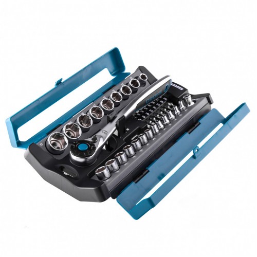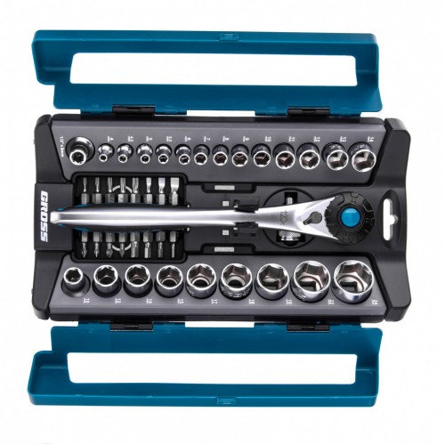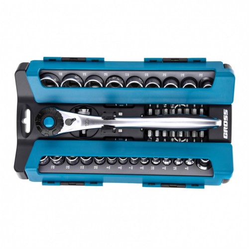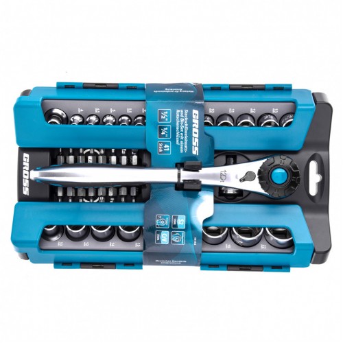 Набор торцевых головок, трещотка 120 зубьев, 41 предмет, 1/2", 1/4", CrV Gross, ( 14143 )