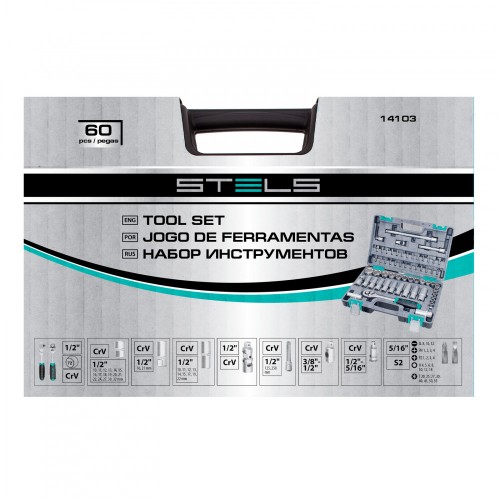 Набор инструментов, 1/2, CrV, пластиковый кейс, 60 предметов Stels, ( 14103 )