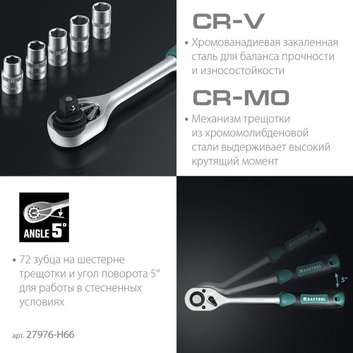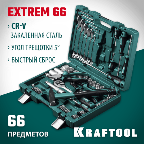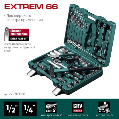 KRAFTOOL EXTREM-66, 66 предм., (1/2"+1/4"), Универсальный набор инструмента (27976-H66_z01)