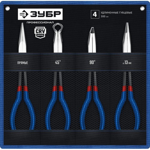 Набор удлиненного губцевого инструмента ЗУБР 22026, предназначен для выполнения слесарных, монтажных и ремонтных работ. Удлиненные губки для работы в труднодоступных местах и ограниченном пространстве. Изготовлены из высококачественной CrV стали. Полный набор инструмента для различных работ. Удобный чехол для хранения и переноски.