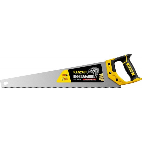 Ножовка универсальная (пила) COBRA 7 STAYER 1510-50_z02, предназначена для продольной и поперечной распиловки древесины различных пород средних и мелких размеров. Ножовка с универсальными зубьями, остро заточенными с двух сторон, обеспечивает точный рез.
