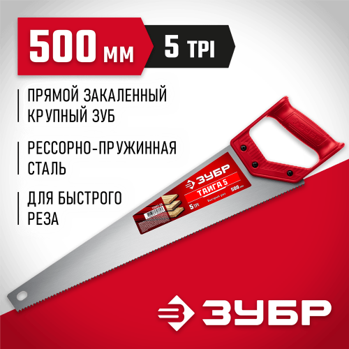 ЗУБР 5 TPI, 500 мм, ножовка для быстрого реза ТАЙГА 5 15083-50