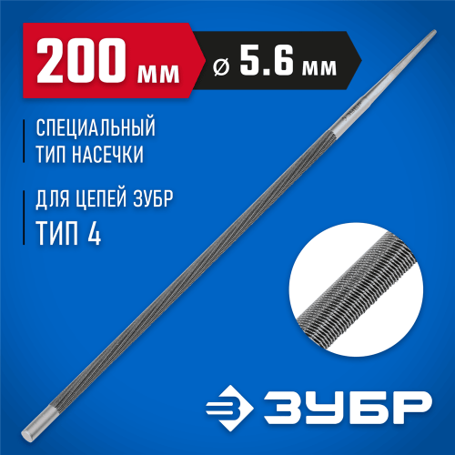 Напильник круглый ЗУБР 1650-20-5.6, применяется для заточки цепных пил. Изготовлен из высококачественной инструментальной стали, имеет длительный срок службы и обеспечивает высокую скорость и качество выполнения работ. Для цепей ЗУБР Тип 4. Диаметр 5.6 мм (7/32″). Для цепей с шагом 3/8″ и .404″