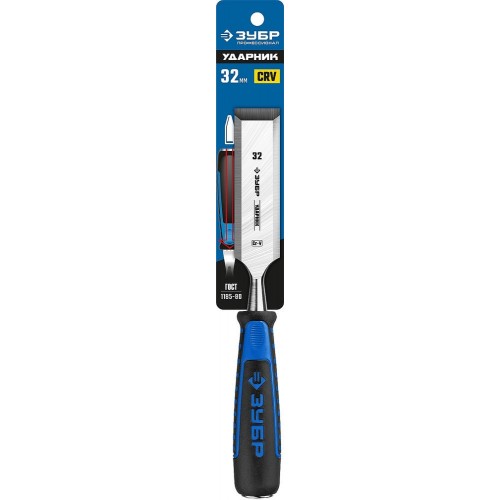 ЗУБР 32 мм, для ударных работ, с ударопрочной двухкомпонентной ручкой и стальным затыльником, стамеска 18097-32_z01 Профессионал