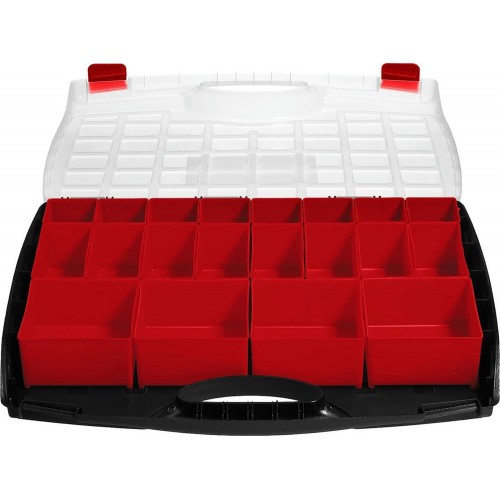 Органайзер ЗУБР 38034-20, применяется для хранения инструментов и принадлежностей. Съемные лотки органайзера позволяют организовать удобное хранение и переноску принадлежностей к инструментам.