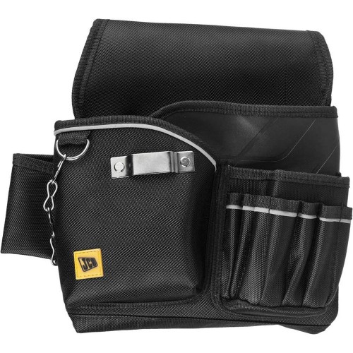 Поясная сумка одинарная JCB JSW014, предназначена для переноски и хранения малогабаритного инструмента. Изготовлены из высококачественных материалов и обладают превосходными прочностными характеристиками. 10 карманов для инструментов. Держатель для изоленты. Держатель для рулетки.