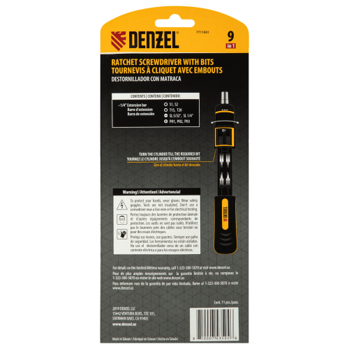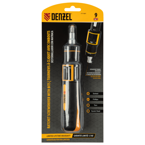 Отвертка реверсивная с револьверным механизмом DENZEL 11 шт, сталь S2