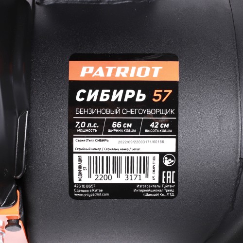Снегоуборщик бензиновый PATRIOT Сибирь 57