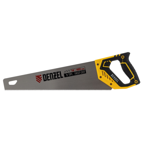Ножовка по дереву DENZEL 400 мм, 9 TPI, зуб 3D, двухкомпонентная рукоятка