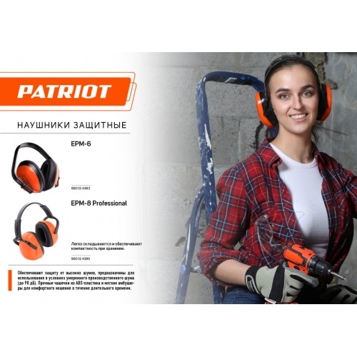 Наушники Patriot EPM-8 Professional предназначены для защиты органов слуха от воздействия интенсивных промышленных шумов. Наушники изготовлены из высококачественного пластика. Имеют регулируемые дужки, что позволяет подогнать наушники до нужного размера. Мягкая окантовка придает наушникам дополнительный комфорт и удобство в использовании. Складная конструкция обеспечивает удобное хранение и транспортировку наушников.