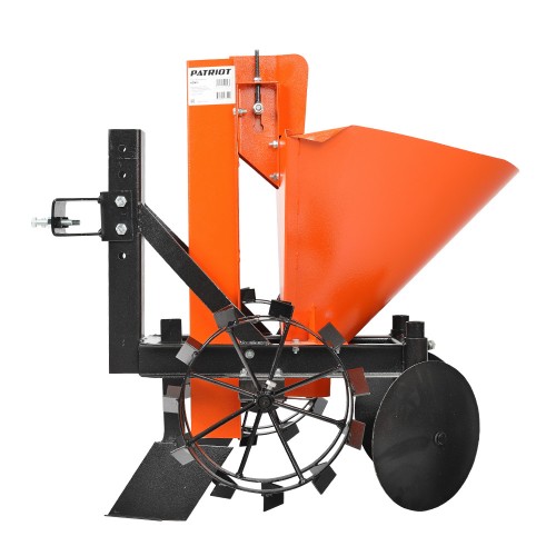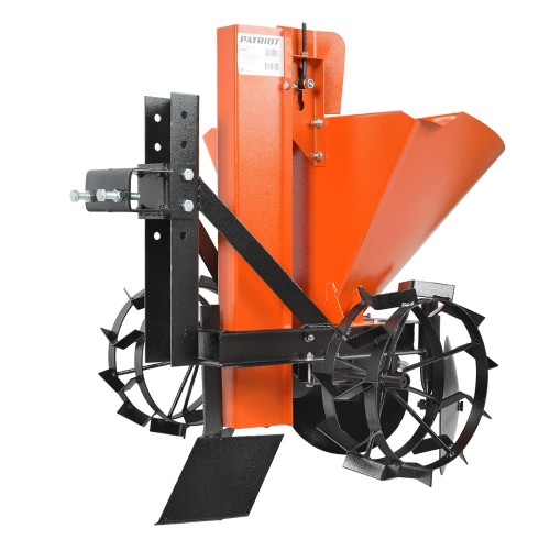 Картофелесажалка КСМ-1 для мотоблоков PATRIOT. Применяется для посадки до 34 литров картофельных клубней на приусадебных участках и огородах. Устройство оснащено грунтозацепами и дисковым окучником, благодаря чему одновременно с посадкой можно нарезать почвенные борозды. Специальная форма лопаток защищает плоды от повреждений при работе. Для установки на мотоблок требуется универсальная сцепка.