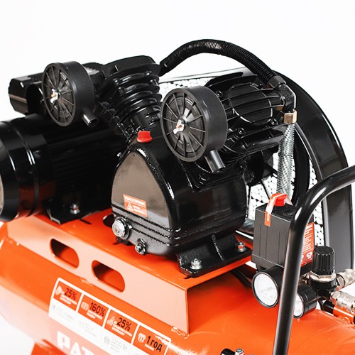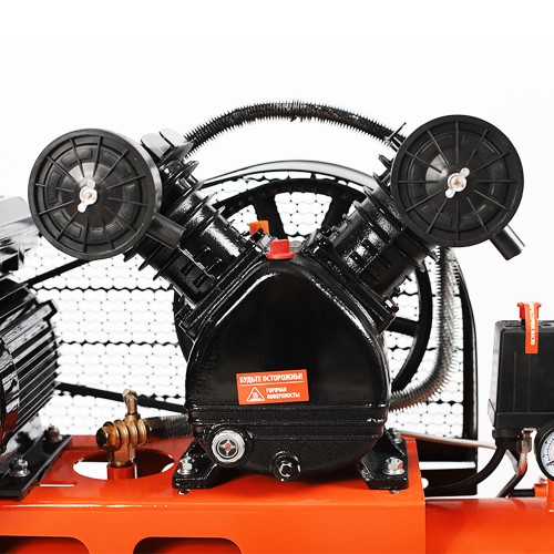 • Ременной привод увеличивает срок службы за счет повышения износоустойчивости деталей компрессора: