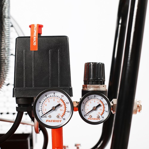 • Два манометра и регулятор для контроля давления в ресивере и регулировки его на выходе;