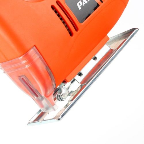 • В конструкции лобзика предусмотрен прозрачный защитный экран для обзора рабочей зоны, что создает
