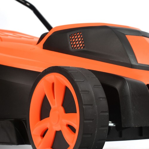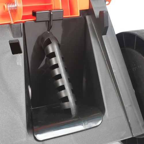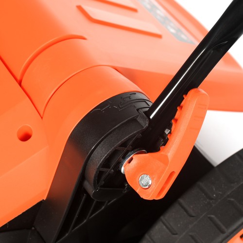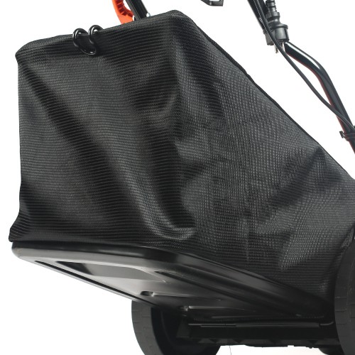 Складная рукоятка, съёмный травосборник и компактный размер позволяют легко транспортировать и хранить газонокосилку.