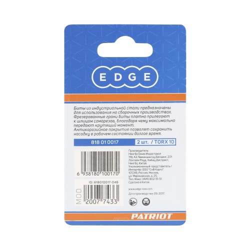 Фрезерованная бита из индустриальной стали T10 х 25 мм, 2шт в блистере