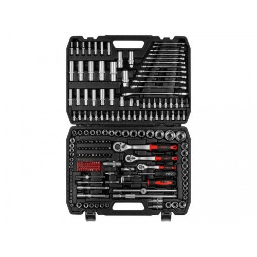 + Головка торцевая 1/4: 4, 4.5, 5, 5.5, 6, 7, 8, 9, 10, 11, 12, 13, 14 мм; + Головка торцевая глубокая 1/4: 4, 5, 6, 7, 8, 9, 10 мм; + Головка торцевая 1/4: E4, E5, E6, E7, E8; + Головка с насадкой HEX 1/4: H5.5, H6, H6.5, H7, H8; + Головка с насадкой TORX 1/4: T25, T27, T30, T35, T40(x2), T45, T50; + Головка с насадкой TAMPER TORX 1/4: TT27, TT30, TT35, TT40, TT45, TT50; + Головка с насадкой SL 1/4: SL6, SL6.5, SL8; + Головка с насадкой PH 1/4: PH3, PH4; + Головка с насадкой PZ 1/4: PZ3, PZ4; + Головка с насадкой M 1/4: M5, M6, M8, M10; + Головка торцевая 3/8: 10, 11, 12, 13, 14, 15, 16, 17, 18, 19 мм; + Головка торцевая глубокая 3/8: 10, 11, 12, 13, 14, 15 мм; + Головка торцевая 3/8: E10, E11, E12, E14, E16, E18; + Свечная головка 3/8: 18 мм; + Головка торцевая 1/2: 10, 11, 12, 13, 14, 15, 17, 19, 20, 21, 22, 24, 27, 30, 32 мм; + Головка торцевая глубокая 1/2: 16, 17, 18, 19, 22 мм; + Головка торцевая 1/2: E20, E22, E24; + Головка с насадкой TORX 1/2: T55, T60; + Свечная головка 1/2: 16, 21 мм; + Насадка 1/4 HEX: H3, H4, H5, H6; + Насадка 1/4 TAMPER HEX: HH3, HH4, HH5, HH6; + Насадка 1/4 TORX: T8, T10, T15, T20, T25; + Насадка 1/4 TAMPER TORX: TT8, TT10(x2), TT15(x2), TT20(x2), TT25(x2), TT40; + Насадка 1/4 SL: SL4, SL5.5, SL6; + Насадка 1/4 PH: PH1, PH2; + Насадка 1/4 PZ: PZ1, PZ2; + Насадка 1/4 U: U4, U6, U8; + Насадка 1/4 SQ: SQ1, SQ2; + Насадка 1/4 TW: TW1, TW2, TW3; + Насадка 1/4 TS: TS6, TS8, TS10; + Насадка 1/4 M: M5,M6,M8; + Насадка 5/16 HEX: H5.5, H6, H6.5, H7, H8; + Насадка 5/16 TORX: T25, T27, T30, T35, T40(x2), T45, T50; + Насадка 5/16 TAMPER TORX: TT27, TT30, TT35, TT40, TT45, TT50; + Насадка 5/16 SL: SL6, SL6.5, SL8; + Насадка 5/16 PH: PH3, PH4; + Насадка 5/16 PZ: PZ3, PZ4; + Насадка 5/16 M: M5,M6,M8,M10; + Трещотка 1/4; + Переходник (держатель для бит) 1/4х1/4(HEX); + Удлинитель 1/4 50 мм; + Удлинитель 1/4 100 мм; + Кардан 1/4; + Вороток-отвертка 1/4 150 мм; + Вороток 1/4 с плавающей головкой 115 мм; + Отвертка-держатель бит 1/4; + Трещотка 3/8; + Переходник (держатель для бит) 3/8х5/16(HEX); + Удлинитель 3/8 125 мм; + Кардан 3/8; + Трещотка 1/2; + Переходник (держатель для бит) 1/2х5/16(HEX); + Переходник 3/8(F)х1/2(М) с отверстием; + Удлинитель 1/2 125 мм; + Удлинитель 1/2 250 мм; + Кардан 1/2; + Вороток 1/2 с плавающей головкой 250 мм; + Ключ комбинированный: 8, 10, 11, 12, 13, 14, 15, 16, 17, 18, 19, 22 мм; + Ключ шестигранный Г-обр.: 1.27, 1.5, 2, 2.5, 3, 4, 5 мм; + Кейс