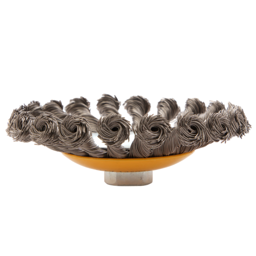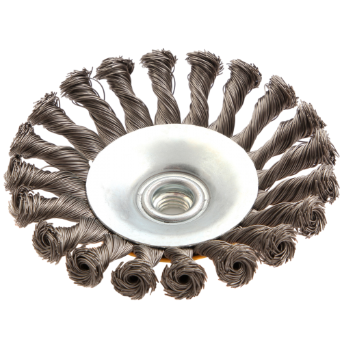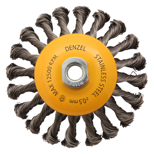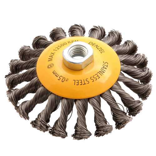 Щетка для УШМ DENZEL 746113, 125 мм, «тарелка», крученая нержавеющая проволока 0.5 мм, М14