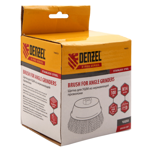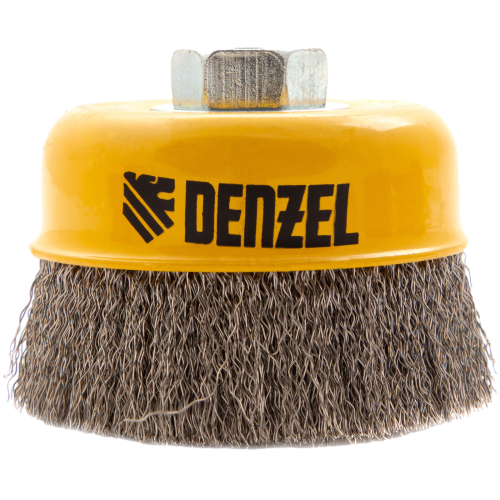 Щетка для УШМ DENZEL 746053, 100 мм, «чашка», витая нержавеющая проволока 0.3 мм, М14
