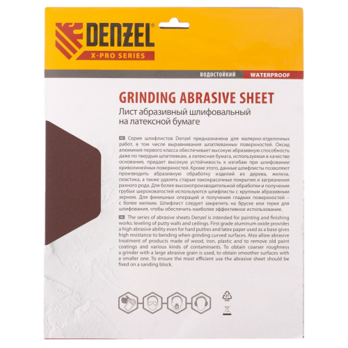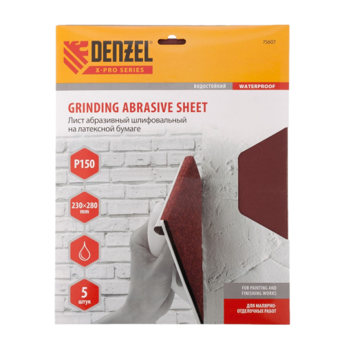 Шлифлист на бумажной основе DENZEL 75607, P150, 230 x 280 мм, латексный, водостойкий, 5 шт.