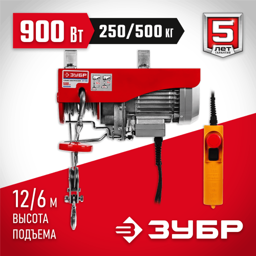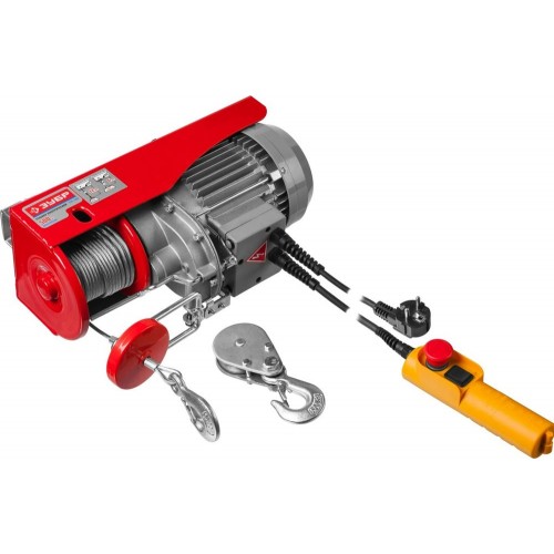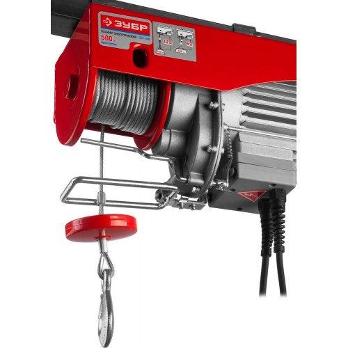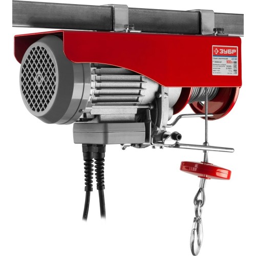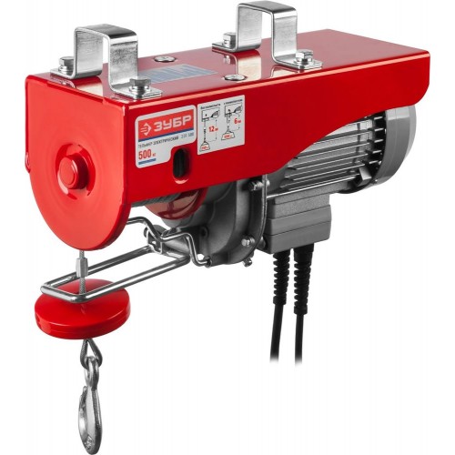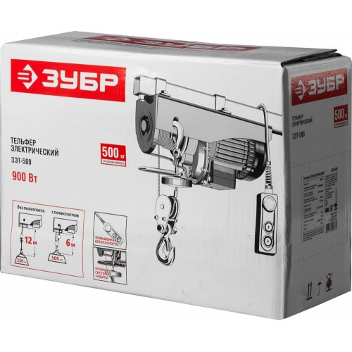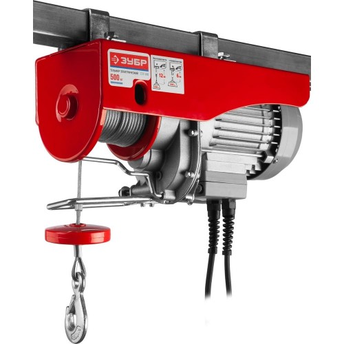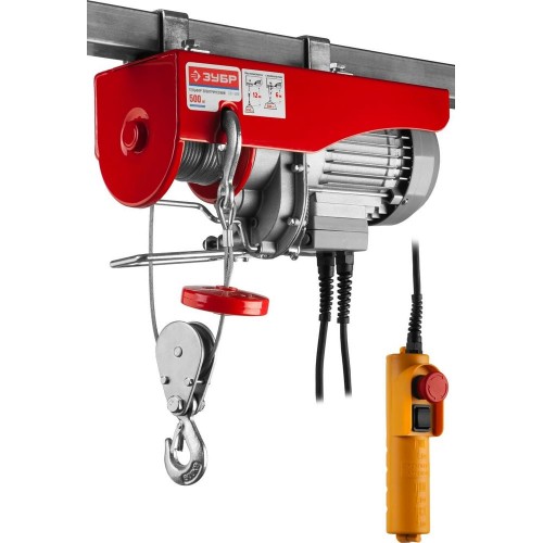 Тельфер электрический ЗУБР ЗЭТ-500, предназначен для подъема, опускания и перемещения (в пределах перемещения кран-балки) грузов в производственных помещениях, складах, гаражах и на строительных площадках. Два режима работы - удвоенный вес или двойная скорость. Оптимален для гаража, мастерской, загородного дома. Возможна работа в режиме с полиспастом. В этом режиме подъемный вес увеличивается в два раза. Защита от перегрузки при превышении подъемного веса. Система остановки при максимальных подъеме и опускании. Подъем и опускание осуществляются только при нажатых кнопках. Выносной пульт для максимального удаления оператора от поднимаемого груза. Кнопка экстренной остановки в случае неисправности. Защитное заземление. Надежный тормозной механизм, обеспечивающий удержание поднятого груза. Конструкция с асинхронным двигателем, не требующим обслуживания в процессе эксплуатации.