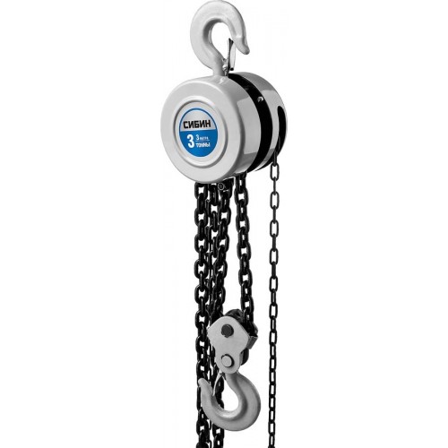 Таль цепная ручная СИБИН 43085-3_z01, предназначена для использования на строительных площадках, складах, пристанях, в гаражах и цехах для погрузки и разгрузки, размещения оборудования. Данное изделие управляется тяговой цепью и не требует подключения к электричеству. Все элементы изделия изготовлены из высококачественной углеродистой стали. Грузовая цепь закалена. Надежный тормозной механизм на основе фрикционных дисков. Оптимальное передаточное число обеспечивает эффективную работу при небольшом усилии на тяговую цепь.