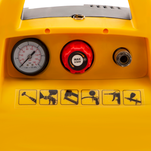 Безмасляный компрессор подходит для работ, не допускающих попадания масла в воздух: покраски, накачки шин, продувки компьютерной техники, чистки строительных инструментов. Допускается подключение пневмонейлера и пневмогравера. Безмасляная технология RTFE значительно упрощает работу с устройством: не нужно использовать маслоуловители или маслоотделители, искать масло и следить за его уровнем.;Генератор энергии сжатого воздуха вырабатывает 180 л в минуту с мощностью 1.1 кВт, что является пиковым значением для безмасляных моделей такого класса. ;Компактные размеры и продуманный дизайн позволяют легко переносить компрессор за удобную транспортировочную ручку. Вес 11.15 кг и габариты 30 х 33 х 36 см упрощают размещение устройства на рабочей площадке и хранение.