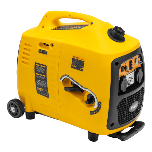 - Мобильность — благодаря колесам и комфортной выдвижной ручке генератор удобно перемещать.