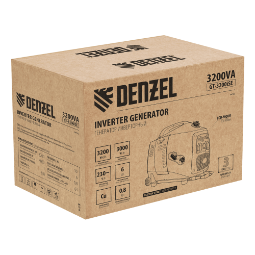 Инверторный генератор DENZEL GT-3200iSE, 3.2 кВт, 230 В, бак 6 л, электростартер