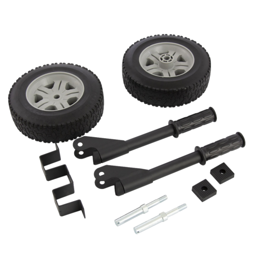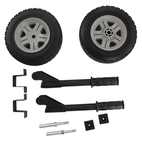 Комплектация Болт М8 - 2 шт, рукоятка - 2 шт, гайка М8 - 2 шт, болт М8 - 4 шт, опора - 2 шт, гайка М8 - 4 шт, гайка М12 - 2 шт, ось - 2 шт, колесо - 2 шт, шайба D16 - 2 шт, шплинт - 2 шт, упаковка - 1 шт, руководство по эксплуатации и гарантийный талон - 1 шт