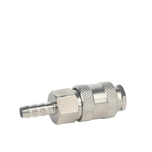 Быстросъёмный переходник PATRIOT 112/С2 с запорным клапаном для присоединения шланга к пневмоинструменту, компрессору или пневмолинии. Переход рапид - «елочка» 8 мм. Монтаж осуществляется с помощью хомута.