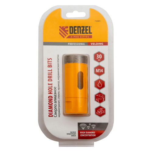 Сверло алмазное по керамограниту DENZEL 72683, 30 мм, М14, мокрая резка