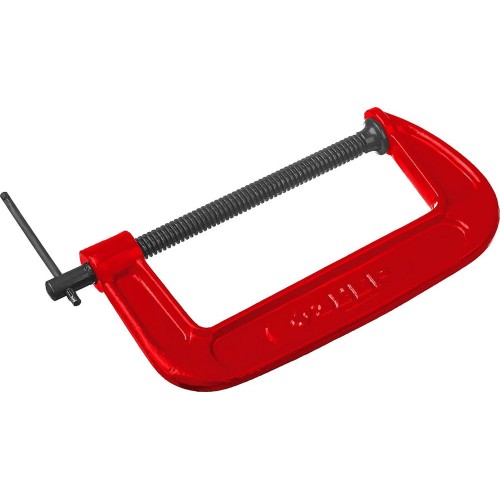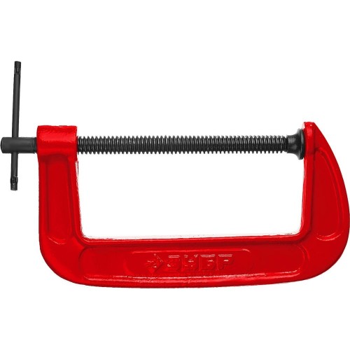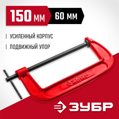 Струбцина 32244-150, применяется для фиксации и удержания деталей при выполнении столярных и слесарных работ. Упорная трапециевидная резьба для передачи высокого крутящего момента. Подвижный упор для предметов различной формы. Закаленный винт из высококачественной инструментальной стали.