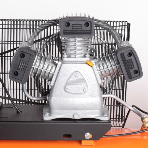 Трехцилиндровый компрессор с ременной передачей и увеличенной производительностью. Применяется для сервисных, ремонтных работ в гараже, на шиномонтаже и автосервисе.