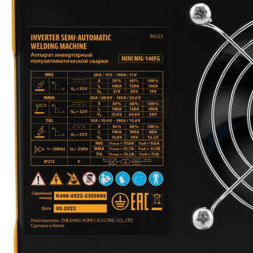 Аппарат инвертор. полуавтомат. сварки DENZEL Mini MIG-140FG, 140 А, ПВ 60%