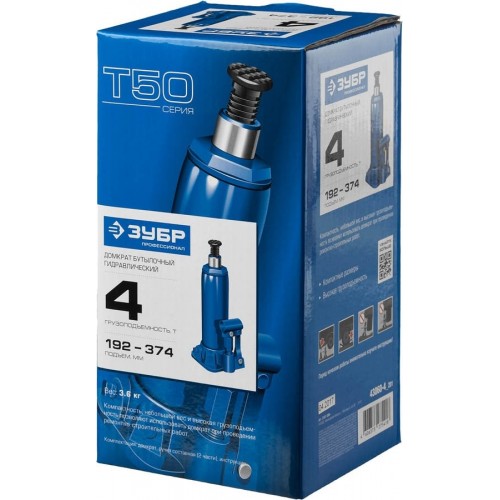 Домкрат гидравлический бутылочный ЗУБР 43060-4_z01, используется при проведении ремонтно-строительных работах. Компактность, небольшой вес и высокая грузоподъемность. Часто используется для обслуживания автомобилей или при работах связанных с ремонтом фундаментов. Компактный. Высокая грузоподъемность.
