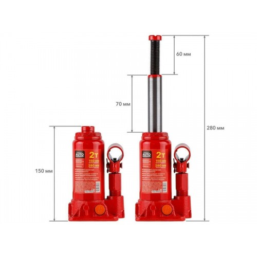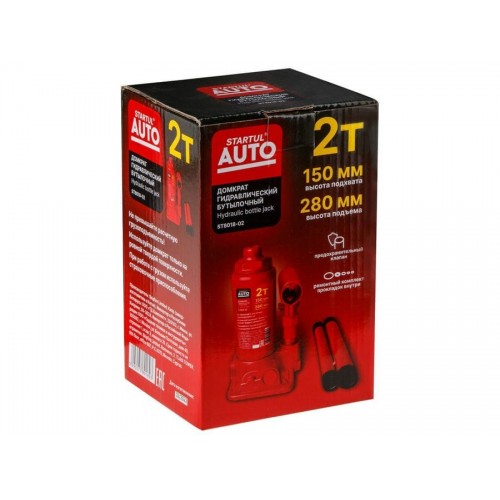 Домкрат гидравлический 2т бутылочный 150-280мм STARTUL AUTO (ST8018-02) (h min 150мм, h max 280мм)