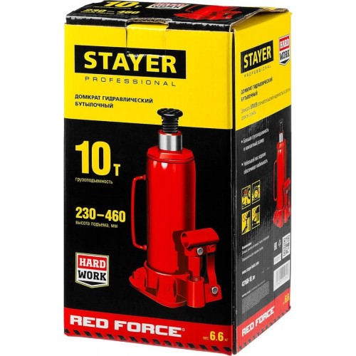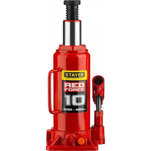 STAYER 10 т, 230-460 мм, домкрат бутылочный гидравлический RED FORCE 43160-10_z01 Professional