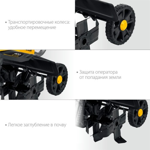 Манёвренный культиватор с синхронным двигателем мощностью 1700 Вт используется для рыхления и культивации почвы на небольшом участках, парниках и теплицах. Оснащен металлическими фрезами с шириной захвата 40 см и обрабатывает почву на глубину до 20 см.