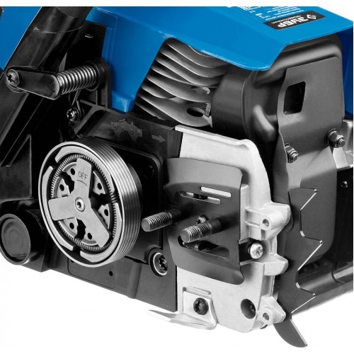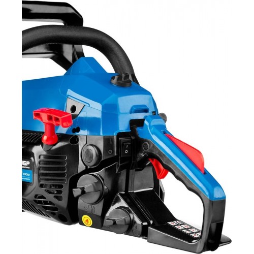 Идеальный вариант для пиления досок, бруса, стволов различных пород дерева на дачном участке. В отличие от электрической, бензиновая пила оснащена более мощным двигателем, безопасна в отношении поражения электрическим током, может работать в любую погоду и в любом месте. Функции легкого запуска, автоматической смазки цепи и эффективная антивибрационная защита делают пилу легкой в обращении и комфортной в работе. Двойной тормоз цепи, приводимый в действие при откидывании защитного щитка или при отпускании клавиши блокировки на рукоятке, а также встроенный цепеуловитель и металлический упор делают пилу безопасной в применении. Большая удельная мощность, высокое качество применяемых материалов и изготовления, обеспечивающие увеличенный ресурс, делают бензиновую пилу ЗУБР Вашим лучшим помощником