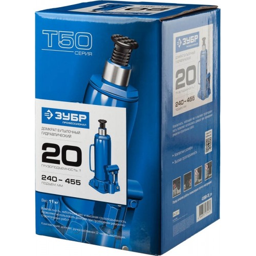 ЗУБР 20 т, 240-455 мм, домкрат бутылочный гидравлический T50 43060-20_z01 Профессионал
