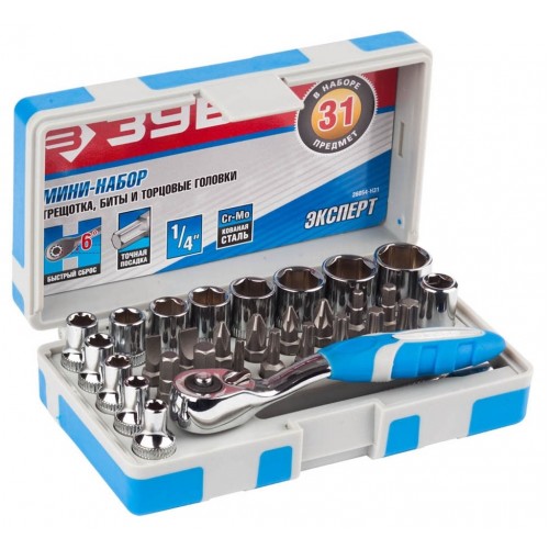 ЗУБР 31 шт., Cr-Mo, набор: трещотка, биты и торцовые головки 26054-H31 Эксперт