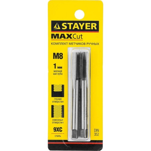 STAYER M8 х 1.0 мм, 2 шт., комплект метчиков MaxCut 28025-08-1.0-H2