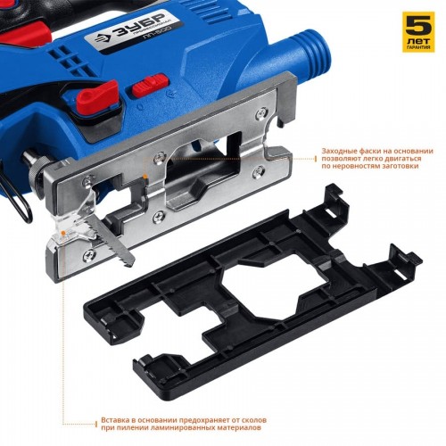 Лобзик электрический ЗУБР ЛП-500, предназначен для продольного, поперечного, под углом и фигурного пиления заготовок из дерева, фанеры, ДСП, пластмасс и металла (при установке соответствующего полотна). Электронная регулировка частоты хода позволяет выбрать наилучший режим работы для любого материала. Переключение между обдувом зоны реза и отводом опилок в пылесос обеспечивает контроль линии пиления или чистоту рабочего места. Патрубок подключения пылесоса снижает запыленность при пилении. Литая подошва с регулировкой угла пропила ±45 градусов с возможностью установки направляющего упора. Вставка в основание для предотвращения сколов в комплекте. Накладка на основание для лучшего скольжения и защиты распиливаемого материал. Фиксатор выключателя повышает удобство при длительной работе. Морозоустойчивый сетевой провод. Встроенный в основание держатель для ключа.