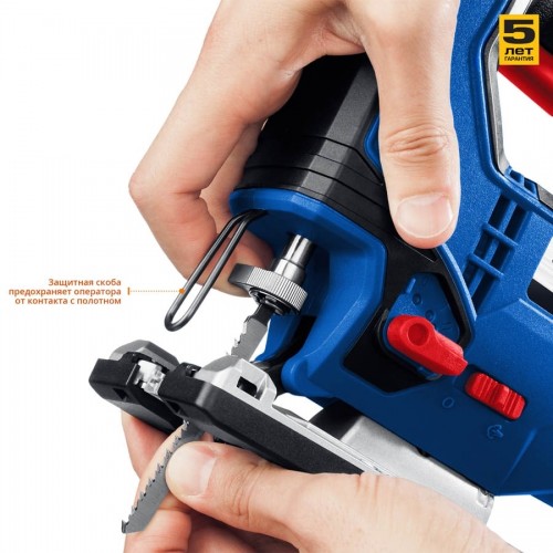 Профессиональный инструмент для всех видов пиления (прямого, наклонного, криволинейного) различных материалов (дерева, фанеры, пластика, металла) от тонких листов до досок толщиной 65 мм. Компактный и мощный, с удобным хватом и отличной маневренностью. Полезные ″мелочи″ вроде вставки для чистого пиления, легко скользящей накладки на основание, встроенного крепления ключа и переключения направлений обдува помогают работать комфортно и эффективно