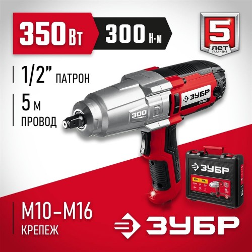 Гайковерт электрический ЗУБР ГС-300 К, предназначен для закручивания/откручивания крепежных элементов при сборке/разборке металлических конструкций, снятии/установке колес автомобиля и т.д. Гайковерт электрический с ударным механизмом для заворачивания крепежа большого диаметра. Огромный крутящий момент для наиболее сложных работ. Благодаря большой частоте ударных воздействий изделие легко заворачивает крепеж большого диаметра и отворачивает даже заржавевшую резьбу. Металлический корпус редуктора обеспечивает передачу большого крутящего момента. Патрон с квадратом 1/2'' позволяет устанавливать наиболее распространенный инструмент. Независимость (в отличие от аккумуляторных гайковертов) от заряда батареи и, соответственно, бОльшая производительность без простоев для зарядки. Надежность и долговечность из-за отсутствия аккумуляторной батареи (по сравнению с аккумуляторными гайковертами). Реверс. Рукоятка с противоскользящей накладкой. Быстрый доступ к щеткам для замены. Длинный сетевой кабель 5 м.