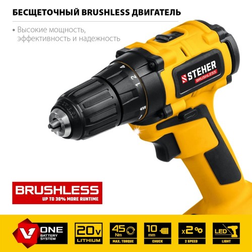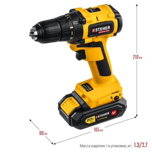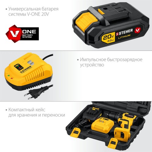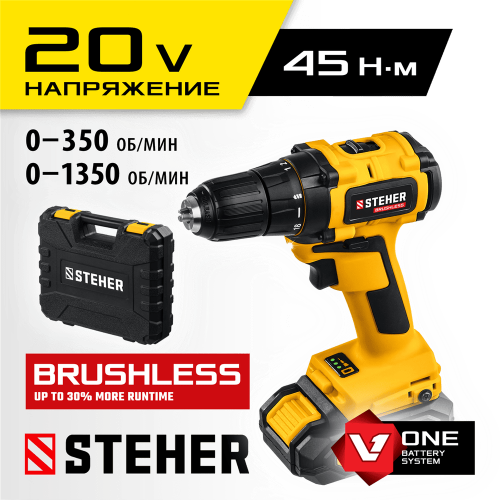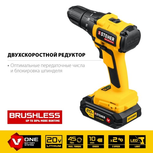 STEHER 20 В бесщёточная дрель-шуруповерт, 1 АКБ (2Ач), в кейсе, CDB-200-1