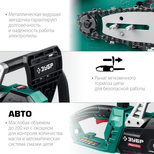 Универсальный и надежный помощник для валки деревьев, а так же пиления веток, обрезки сучьев, пиления деревянных бревен и проч. В отличие от бензиновой, электрическая пила оснащена надежным двигателем, не требует постоянных расходных материалов (топлива), не имеет проблем с запуском при любой температуре, требует минимальных операций при подготовке к работе.