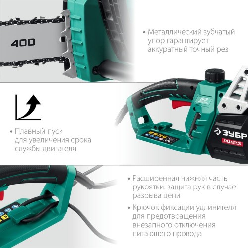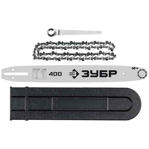 - Шина длиной 400 мм позволяет распиливать заготовки большого диаметра