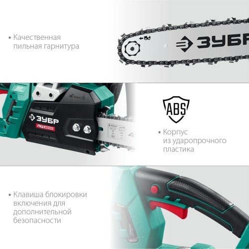 Пила цепная ЗУБР ПЦ-2040, применяется для валки деревьев, а так же пиления веток, обрезки сучьев, пиления деревянных балок, досок и т.п. Легкая, эргономичная и удобная пила с простой конструкцией, гарантирующей высокую надежность. Поперечное расположение двигателя упрощает конструкцию и увеличивает надежность передаточного механизма. Мгновенная остановка цепи, приводимая в действие при откидывании защитного щитка, уловитель цепи и клавиша блокировки включения для дополнительной безопасности. Для работы с инструментом дополнительно требуется приобрести масло (рекомендуем ЗУБР ЗМПМ) и удлинитель-шнур (сечение провода не менее 1 мм²).